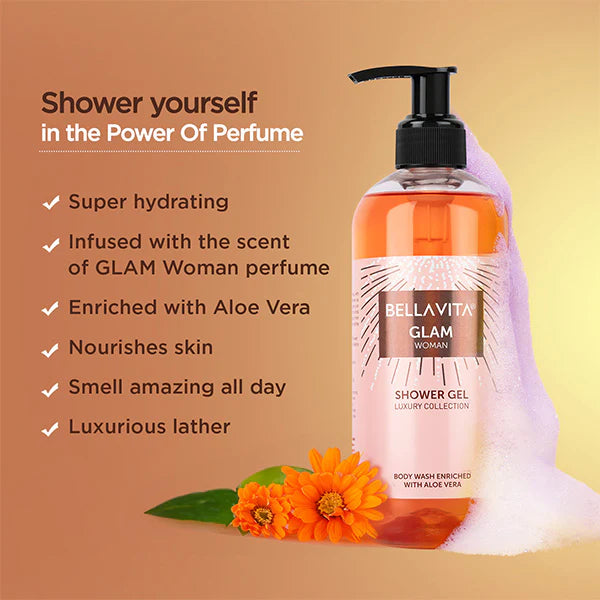 Enter into a world full of glamour and glitz as you lather up with this exceptional GLAM Woman Shower Gel. With a fragrance as intense and alluring as the GLAM Woman perfume, the GLAM Woman Shower Gel deep cleanses your skin gently but efficiently with the goodness of Aloe Vera. Indulge your senses, cleanse your skin, and prepare for a delightful start to your day with the essence of GLAM Woman perfume captured in every drop.
